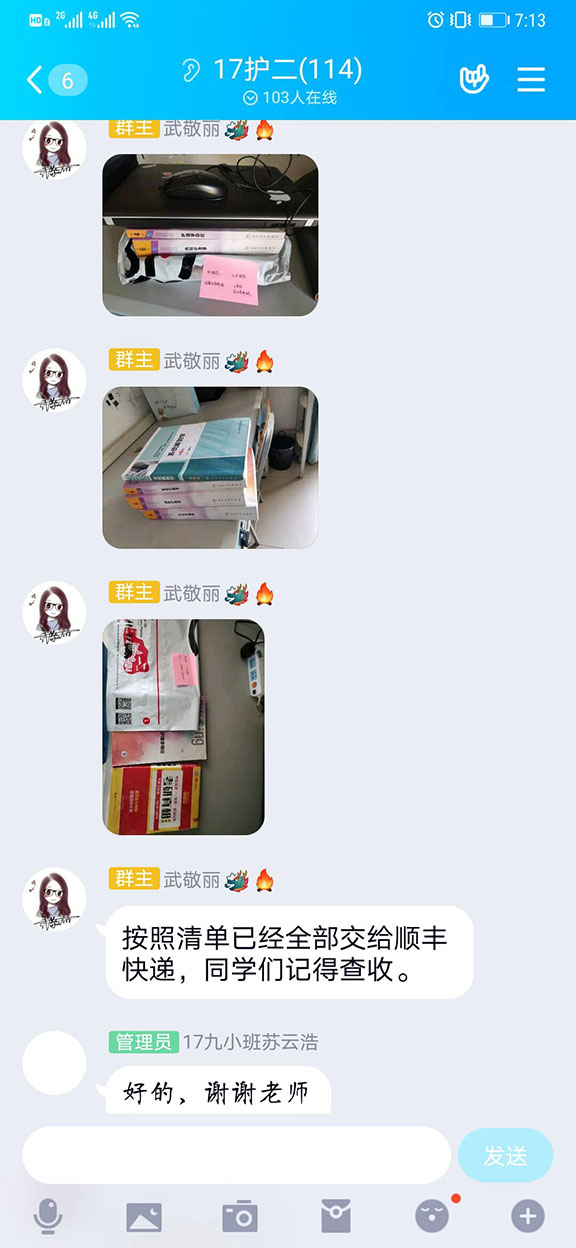 4月29日当天,全体辅导员早早来到永利娱乐城 ,进入学生公寓后就忙碌了起来。老师们按照统计清单逐个为学生取教材和学习资料,有些学生的书本自己都记不清放的具体位置了,老师们通过视频连线、现场直播等形式,与学生一起在宿舍翻找。很多老师带的学生住在南、北两个院,老师们两个院区来回跑,楼上楼下无数趟,抱着资料出来时已经是气喘吁吁,满头大汗。到宿舍楼前空旷区域后,老师们又开始马不停蹄的再次核对每个学生的物品清单,填写邮寄单据,一边写一边叮嘱快递小哥:“这些教材和资料非常重要,都是学生一个学期的笔记,是独一无二的,一定要保证送到啊”,说笑中手里的工作都不停。通过一天的努力,老师们共为146名学生办理教材和学习资料邮寄工作,累积数量达500余本,完满完成全部工作任务,目前学生已陆续收到教材和复习资料,对永利娱乐城 和辅导员老师表示感谢,“爱心速递”传递的不仅仅是一个包裹,更是承载着永利娱乐城 所有教师的关心和厚望。